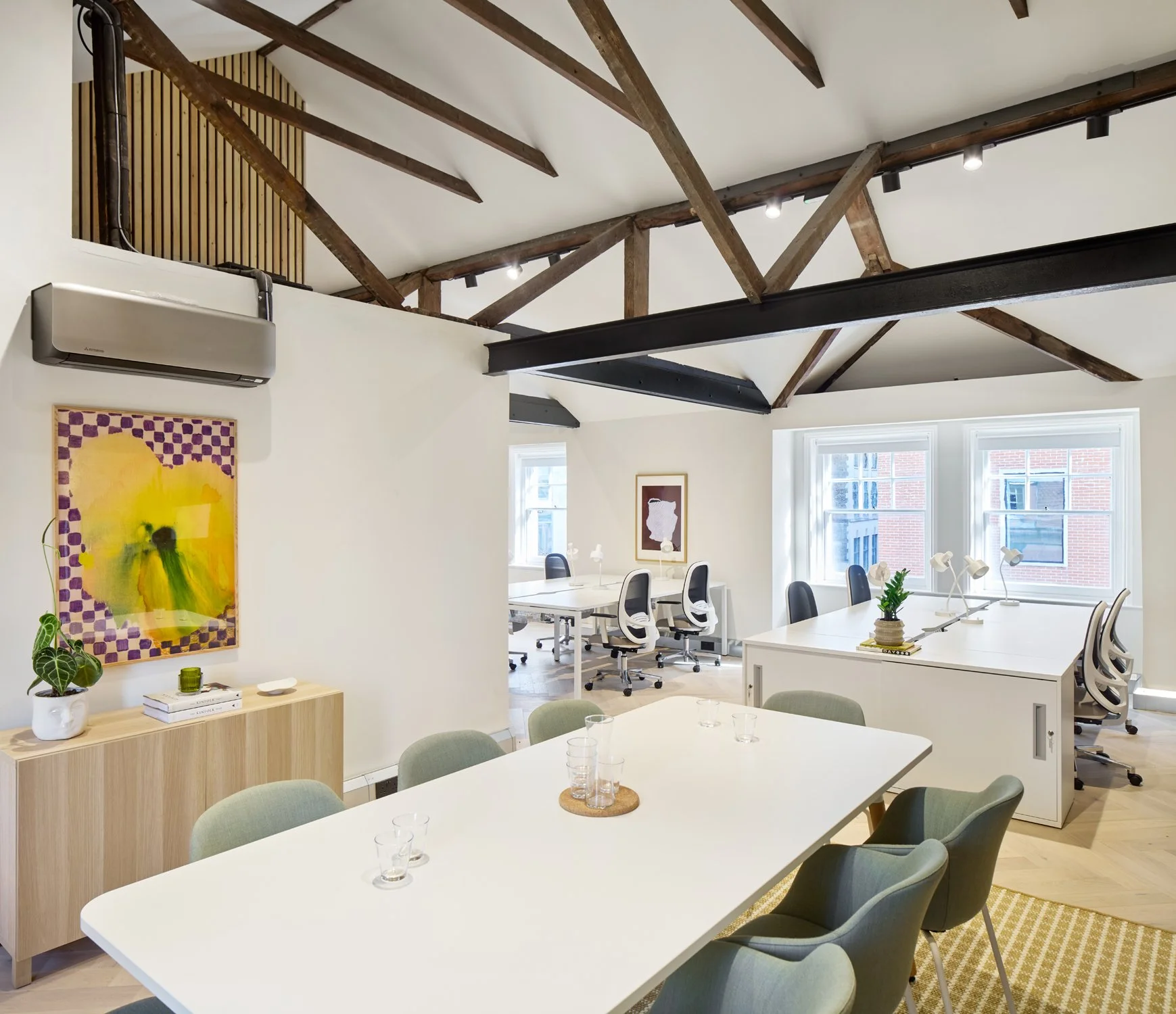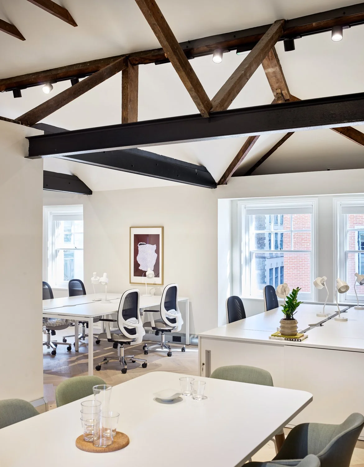 Eastcastle Street is a characterful office in Fitzrovia where Similar Ideas led the furniture procurement and final dressing to enhance the building’s existing architectural features. Exposed brickwork, timber beams and generous light set the tone for a space that feels distinctive, welcoming and grounded in its context.