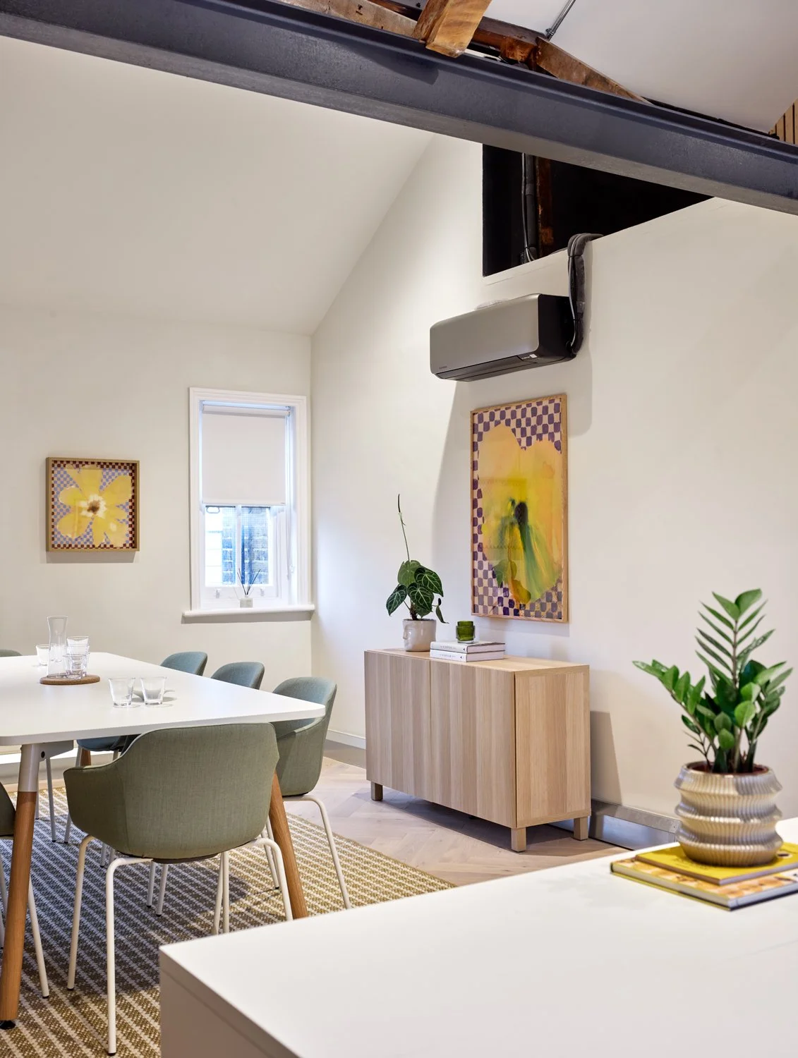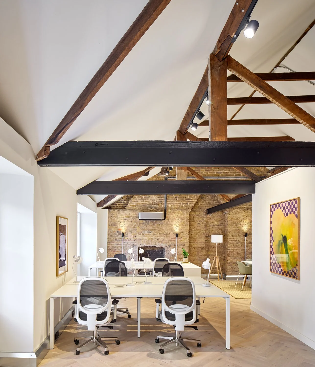 Our approach focused on layering furniture, lighting and accessories to create practical, flexible work zones alongside more informal areas for meeting and pause. By balancing contemporary workplace furniture with softer, residential touches, the space feels approachable and lived-in while remaining highly functional. An office that supports everyday work and reflects the personality of the building and its occupants.