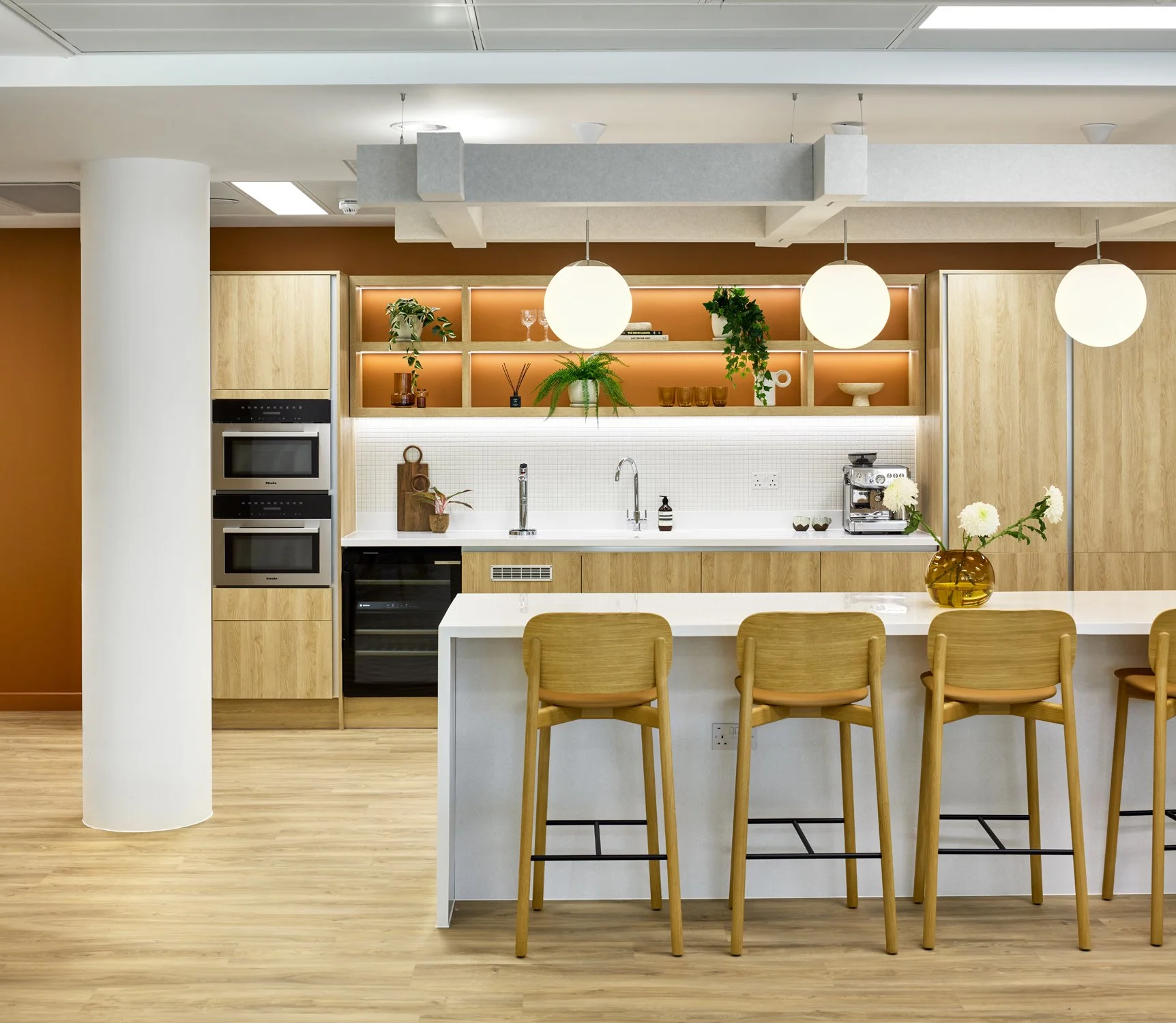 A boutique-style workplace at 1 Kingsway, designed to feel aspirational, flexible and welcoming. Balancing hospitality comfort with professional performance.