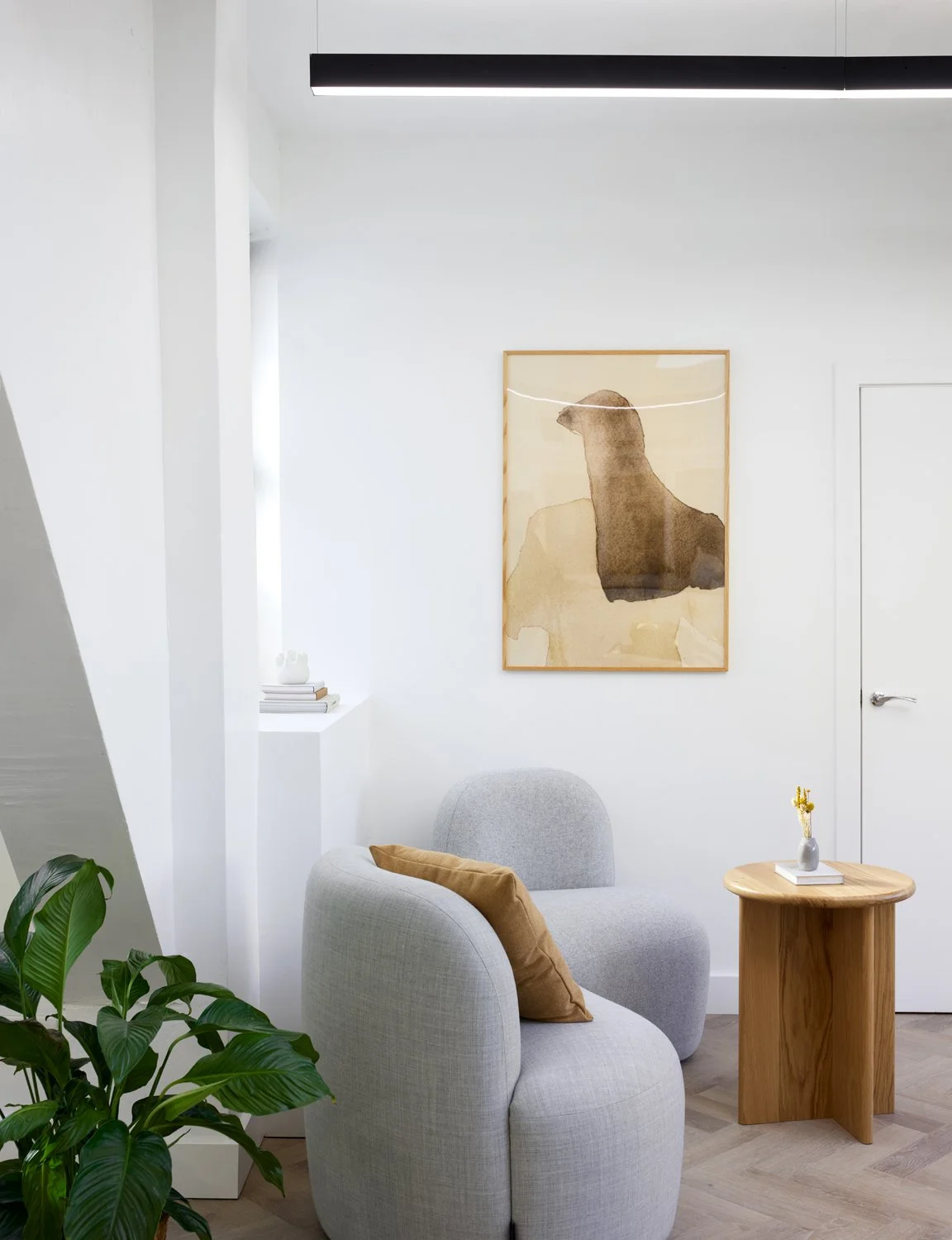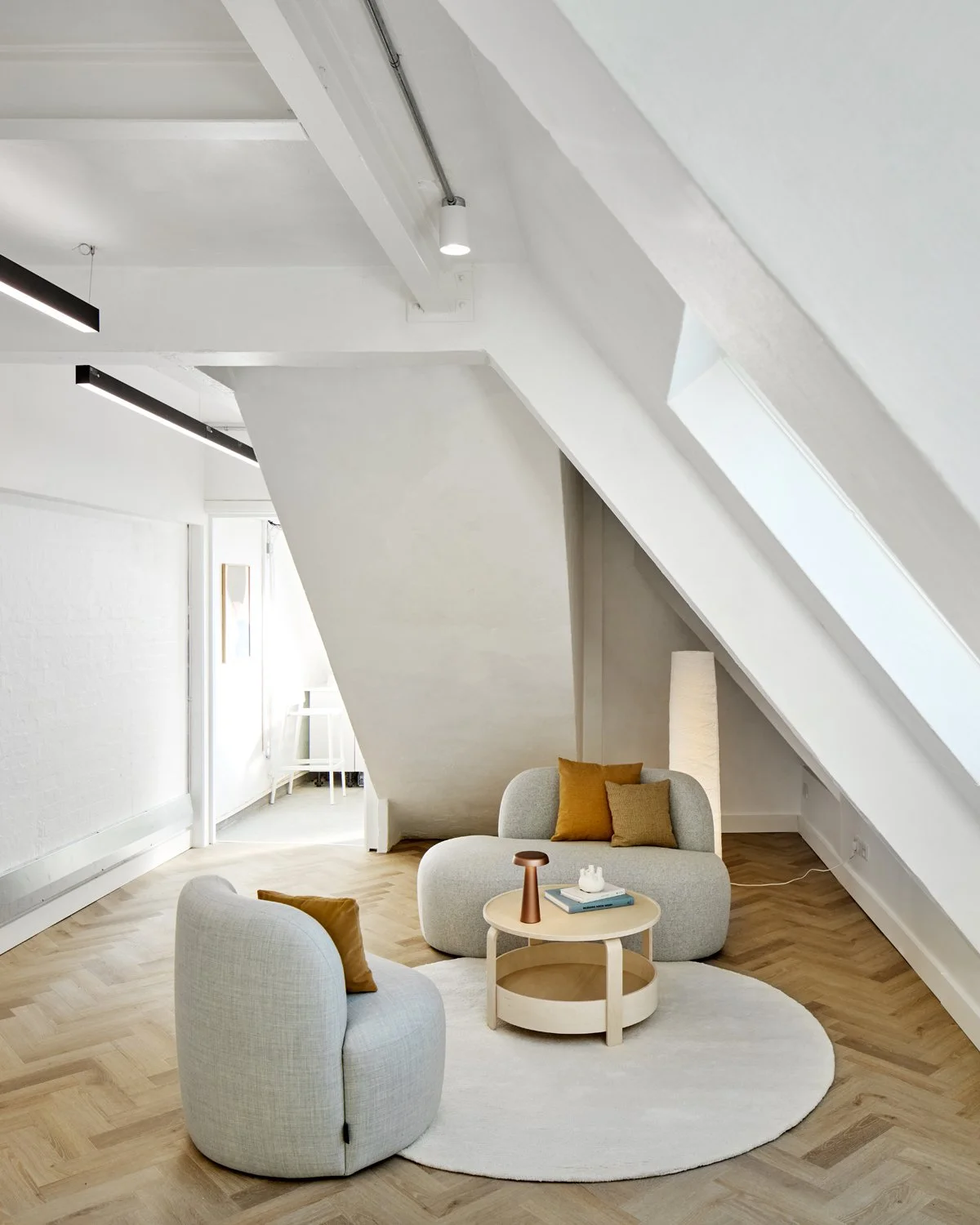Working closely with the client, we shaped a design that balances clarity and warmth. Using a soft, neutral palette, natural materials and carefully selected furniture to create distinct zones for working, meeting and pausing. The result is a considered, contemporary office that feels welcoming, practical and quietly confident. Reflecting both the building’s character and the people who use it every day.
